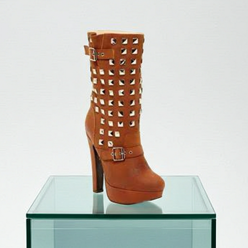 APOLLO mid-calf boots feature genuine leather with studded details and a 4.5-inch heel. They combine durability with a stylish, bold look, offering comfort and long-lasting wear. Perfect for adding height and edge to both casual and dressy outfits.