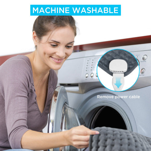 This heating pad is made of 100% polyester, with dense wiring the heating pad, which can embrace your body parts and offers soothing heat to relieve your neck and shoulder, back pain, cramps, waist, abdomen, leg pain