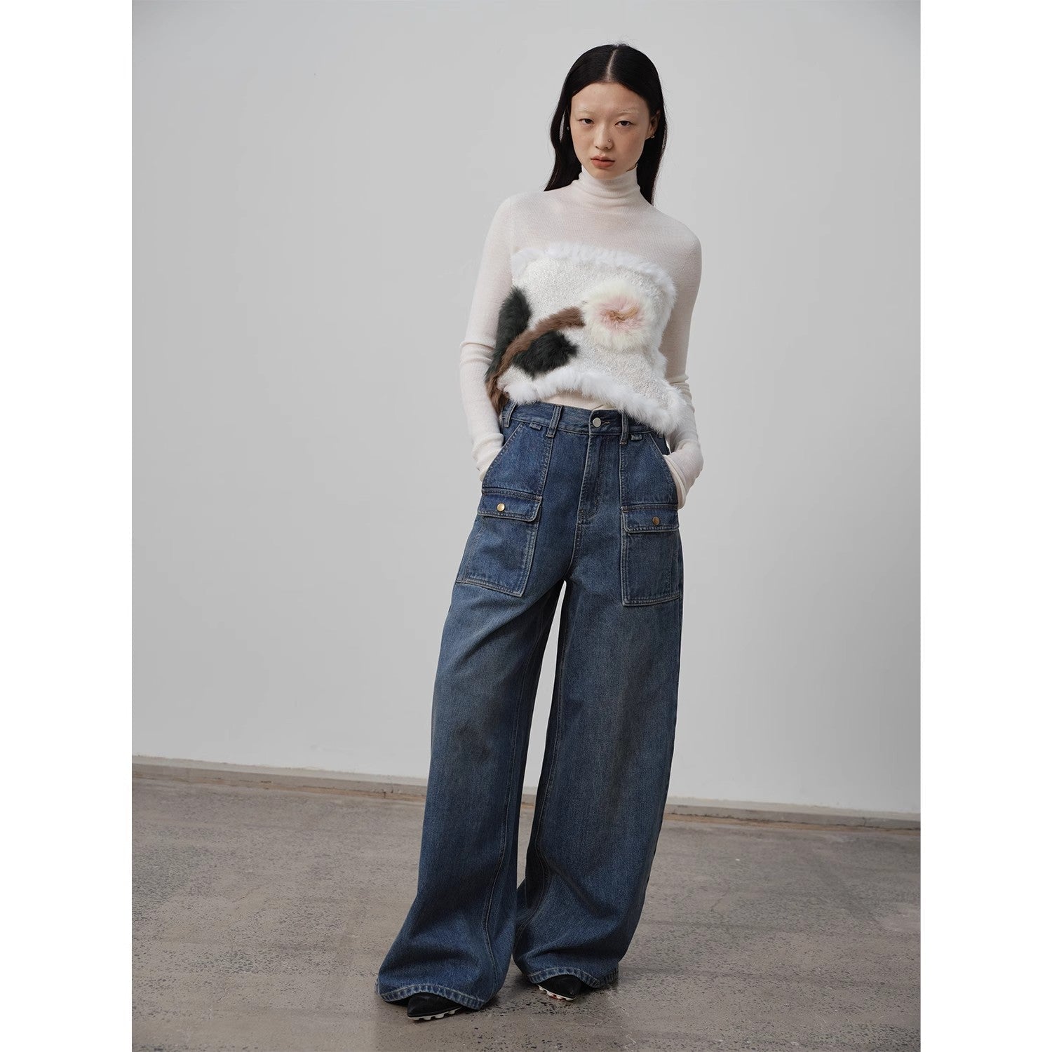 This stylish, high-end wardrobe piece can be worn in all seasons. The side seams are moved forward and the double-stitched details create a streamlined structure, elongating the legs and adding height. The clean and neat straight waist design is ergonomically crafted to naturally fit the waist and abdomen while leaving some room for comfort, accentuating the slender waistline.